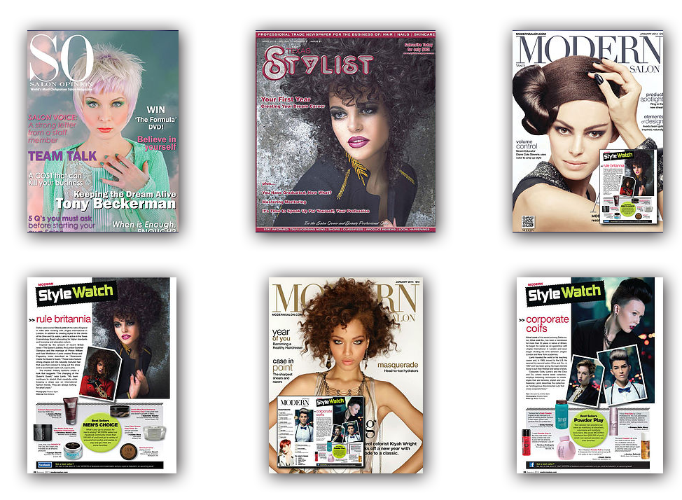 SO, Stylist and Modern Salon covers, Style Watch insert – Clive and Co Art Team (Cut: Marc Hebert – Color: Abigail Membreno); Photography: Phoenix Taylor, Makeup: Kaia Bellanca Beggs